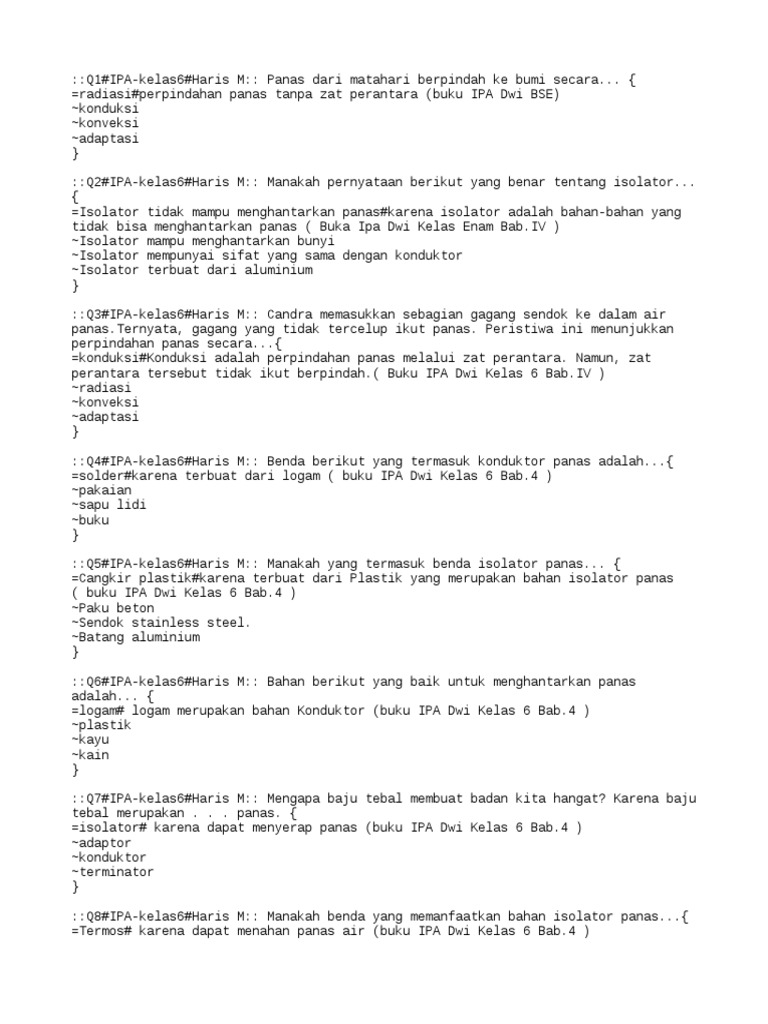Yang pertama adalah wajan wajan atau bagian dari besi yang terbuat dari logam. Jadi logam memiliki sifat jonduktor panas. Panci wajan penggorengan dan beberapa peralatan masak di dapur terbuat. Kain merupakan pengantar panas yang buruk.