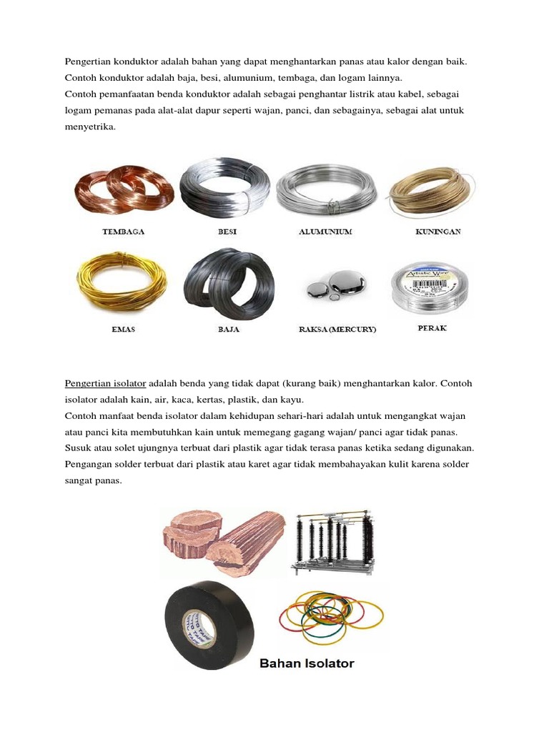 Karena bersifat isolator panas maka kayu dan plastik digunakan sebagai bahan untuk membuat pegangan payung gagang setrik gagang wajan tatakan gelas dan tatakan piring. Kain merupakan isolator panas karena sulit menghantarkan panas. Logam merupakan benda yang mudah menjadi panas. Bahan yang tidak dapat menghantarkan panas disebut dengan isolator.