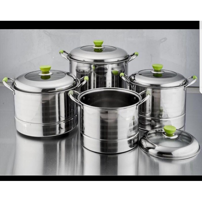 Panci paling bawah memiliki kapasitas paling besar karena digunakan untuk wadah air mendidih sedangkan panci lainnya memiliki kapasitas yang sama. 10 merk panci kukus di atas bisa anda jadikan referensi terbaik. Panci saito 555 stockpot jumbo stainless steel steamer parp290 000. Panci kukus kecil stainless steel.