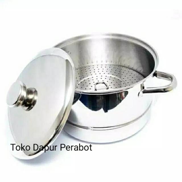 Belanja jual panci stenlis 2 susun besar 28 kukus steamer kukusan tim dimsum siomay murah.