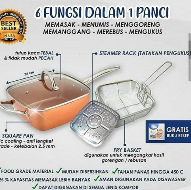 Bayangkan harga panci serbaguna hakasima ini setelah didiskon tidak sampai 1 3 juta rupiah tapi anda dapat memasak memanggang mengukus menggoreng serta membuat aneka jajanan tradisional indonesia. Percaya atau tidak diskon untuk 55 bisa mencapai 55. Ceramic coating pemanasan lebih sempurna dan aman untuk kesehatan. Seperti namanya panci hakasima ini benar benar fantastis karena sangat mutlfungsi atau serbaguna.