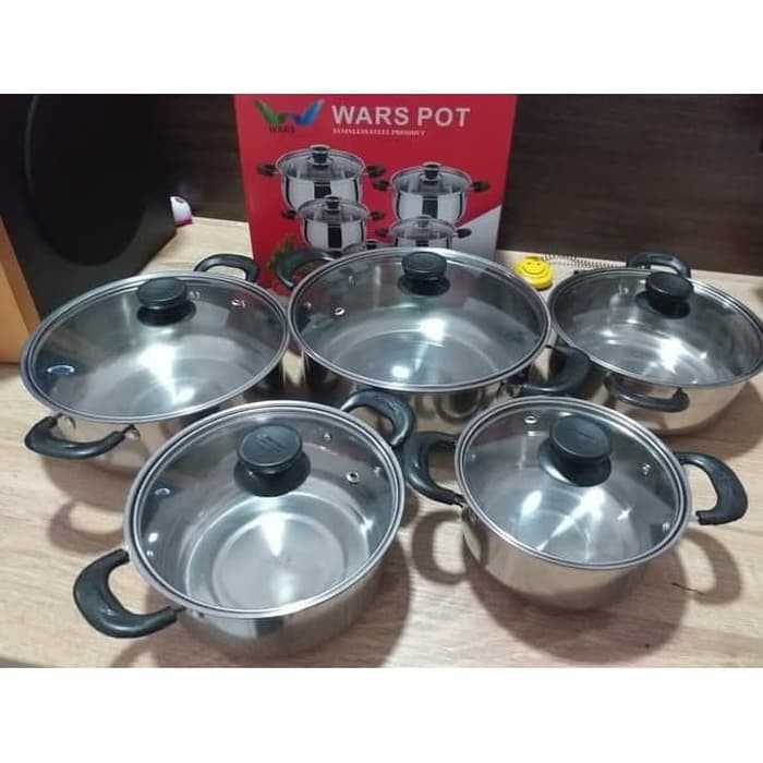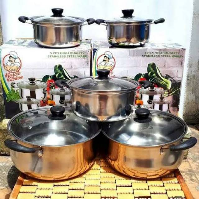 Jual a945 panci set peralatan masak isi 5 tutup kaca stainless steel dengan harga rp225 000 dari toko online blanjaanku kota tangerang.
