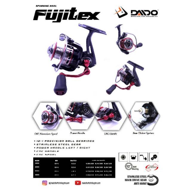 Reel pancing daido fujitex. Jual beli online aman dan nyaman hanya di tokopedia. Pembayaran mudah pengiriman cepat bisa cicil 0. Reel pancing daido fujitex 2000 spinning power handle daido fujitex 12 1 ball bearing power handle gagang bisa dipindah kanan atau kiri max drag 12kg. Jual reel daido fujitex 4000 dengan harga rp228 500 dari toko online glory fishing kab.